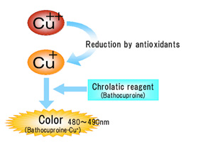 mixed with Cu++ Solution. Cu++ are reduced by antioxidants to form Cu+. Reduced